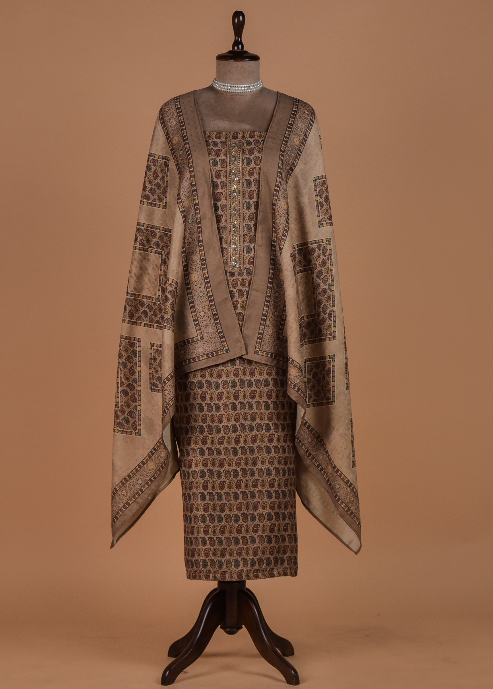 Beige Pashmina Dress Material