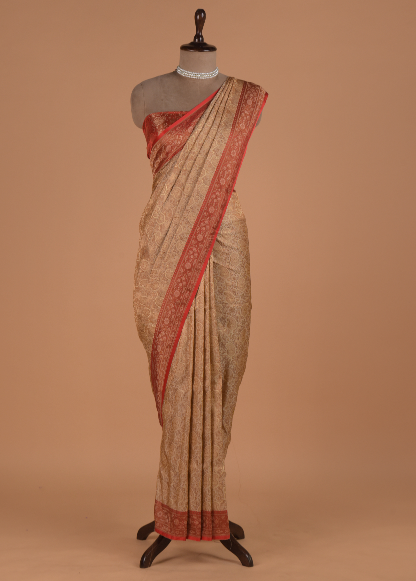 Cream Art Silk Banarasi Saree