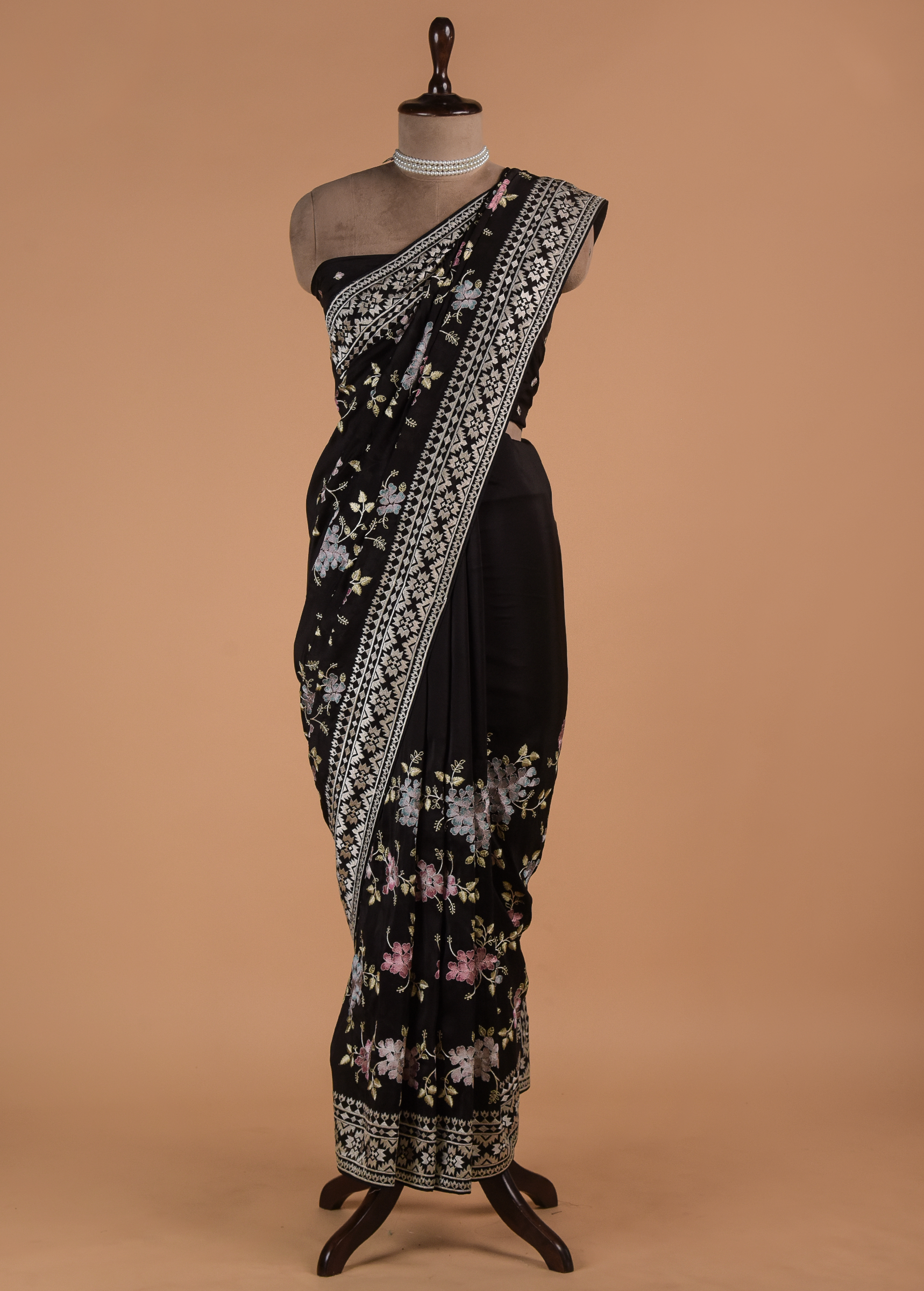Black Organza Embroidered Saree