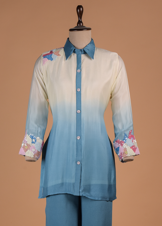 Blue Crepe Silk Coord Set