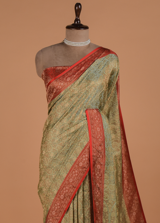 Blue Tissue Georgette Readymade Saree