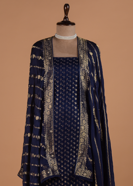 Blue Silk Dress Material