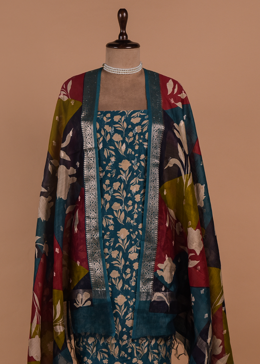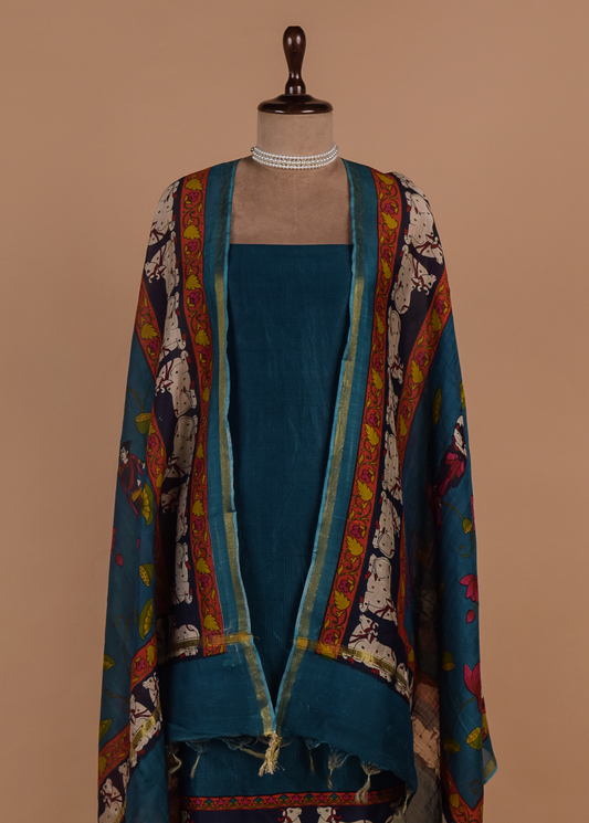 Blue Chanderi Cotton Dress Material