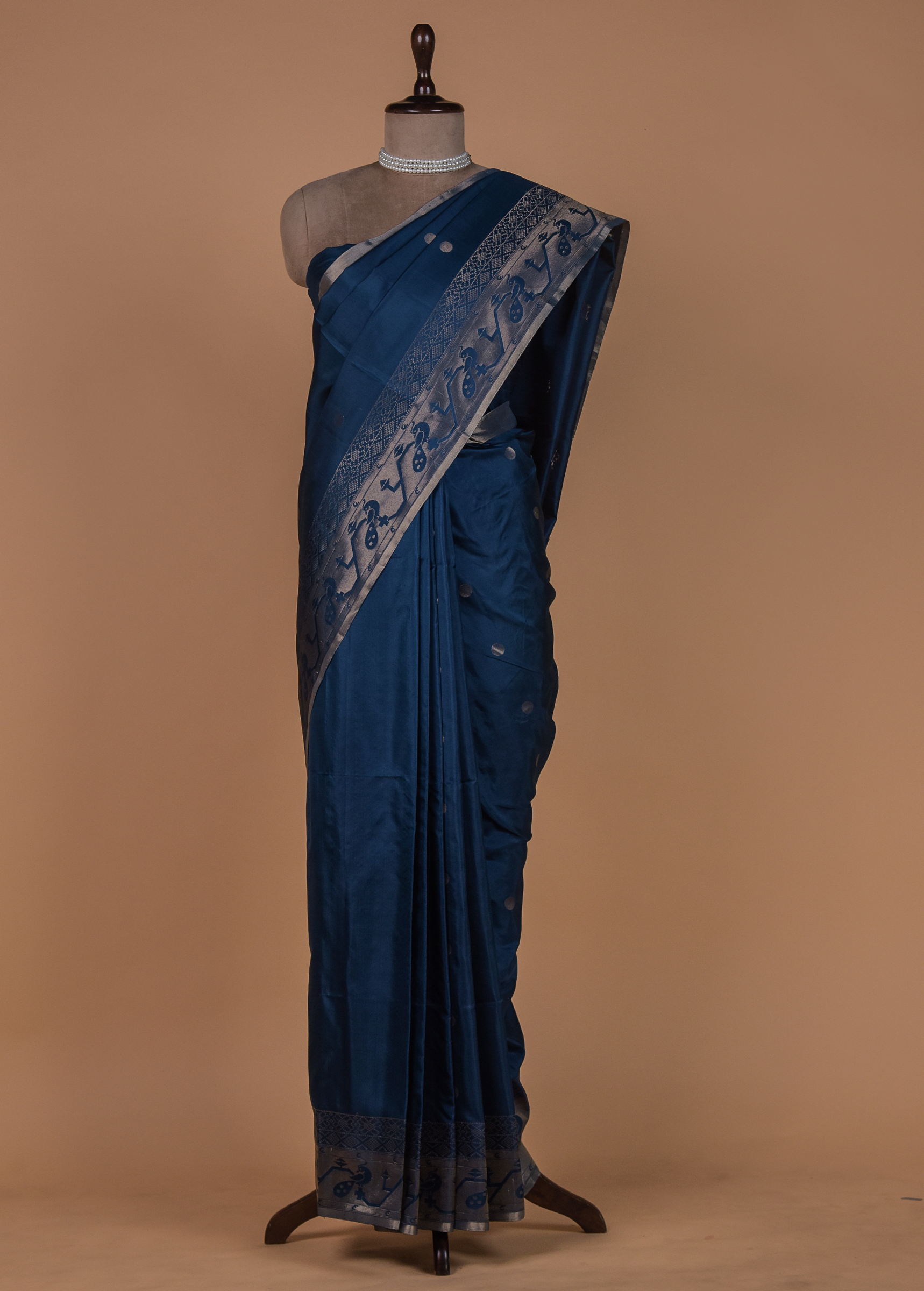 STUNNING KANJEEVARAM SOFT SILK SAREE WITH SMALL MOTIFS WOVEN IN GOLD THREAD ADORNING A PAITHANI STYLE BORDER AND PALLA
