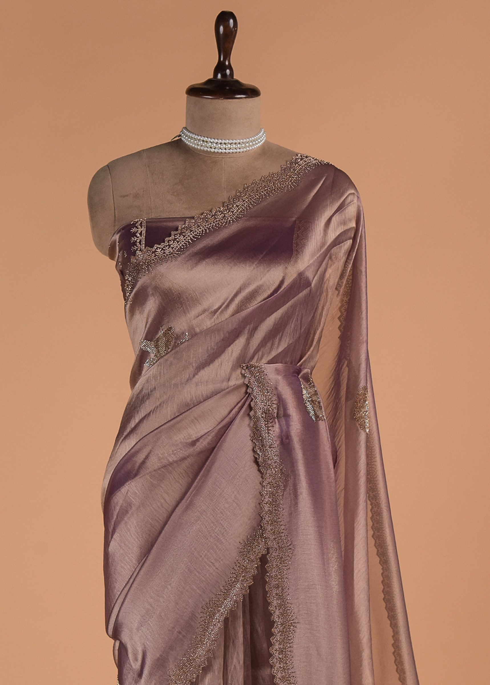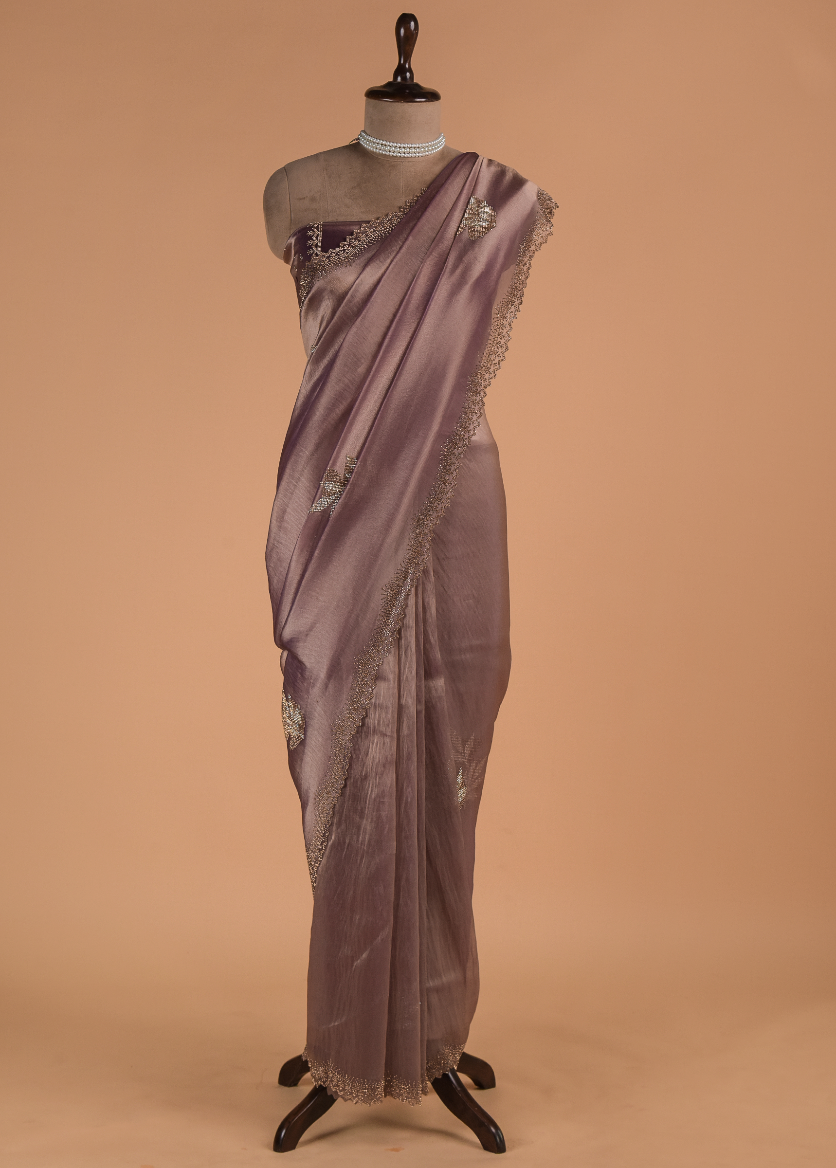 TISSUE ORGANZA SAREE WITH STONE WORK ADORNING A MATCHING BLOUSE