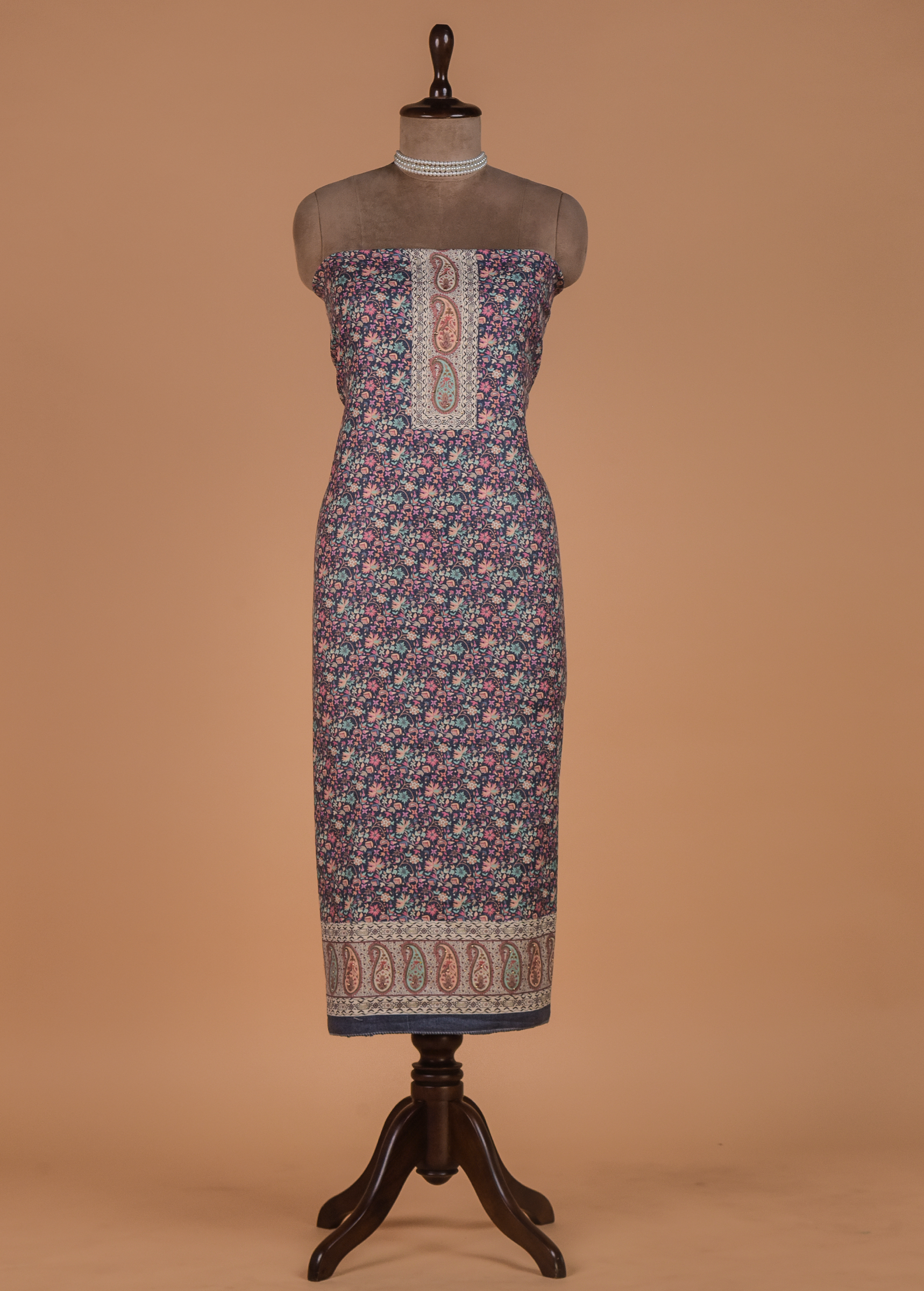 THREE PIECE PASHMINA SUIT SET WOVEN IN MULTICOURED THREADS WITH A MATCHING DUPATTA AND BOTTOM