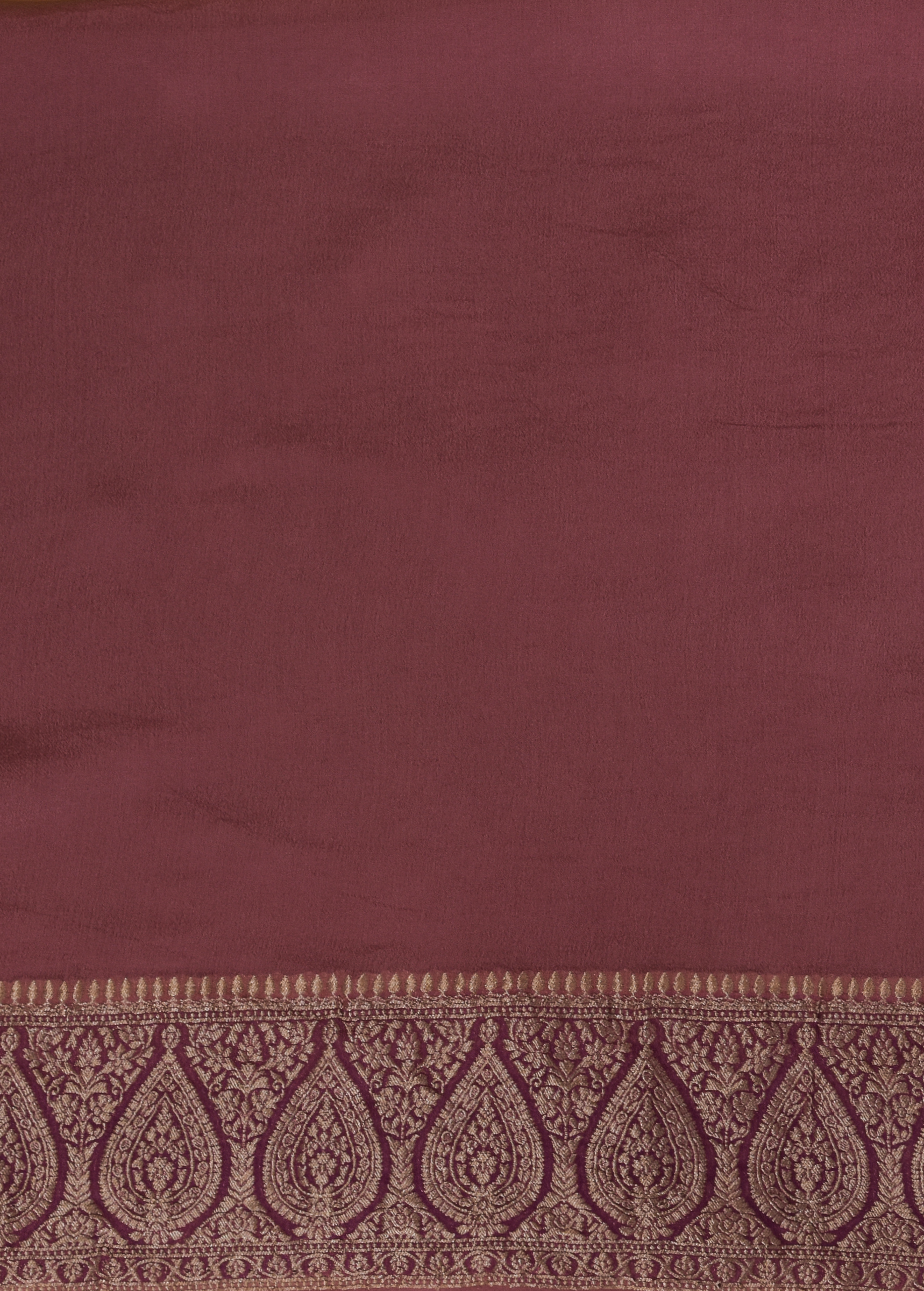 BANARASI RANKAT KHADDI GEORGETTE SAREE WITH FLORAL DESIGN WOVEN IN GOLD ZARI ADORNING A MATCHING BLOUSE
