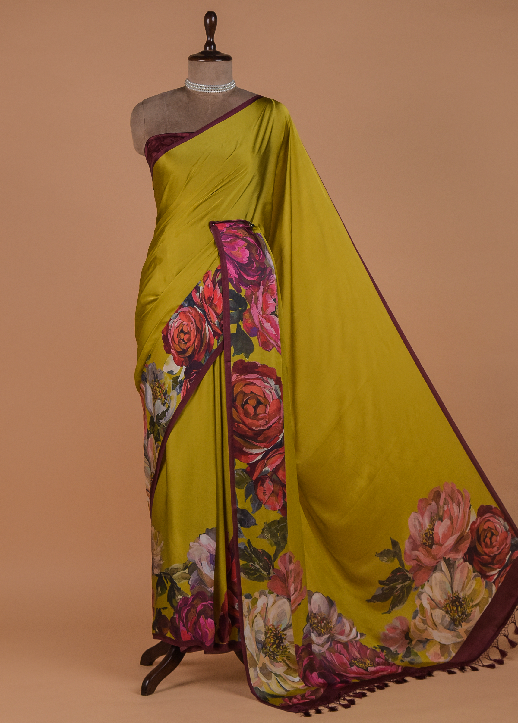 FLORAL PRINTED SATIN SAREE WITH A MATCHING BLOUSE