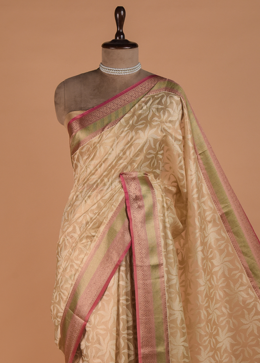 Cream Handwoven Banarasi Saree | Greenways