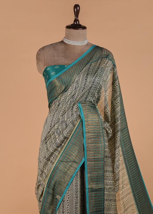 Green Printed Cotton Saree | Greenways