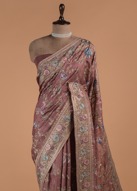 Pink Tissue Organza Embroidered Saree