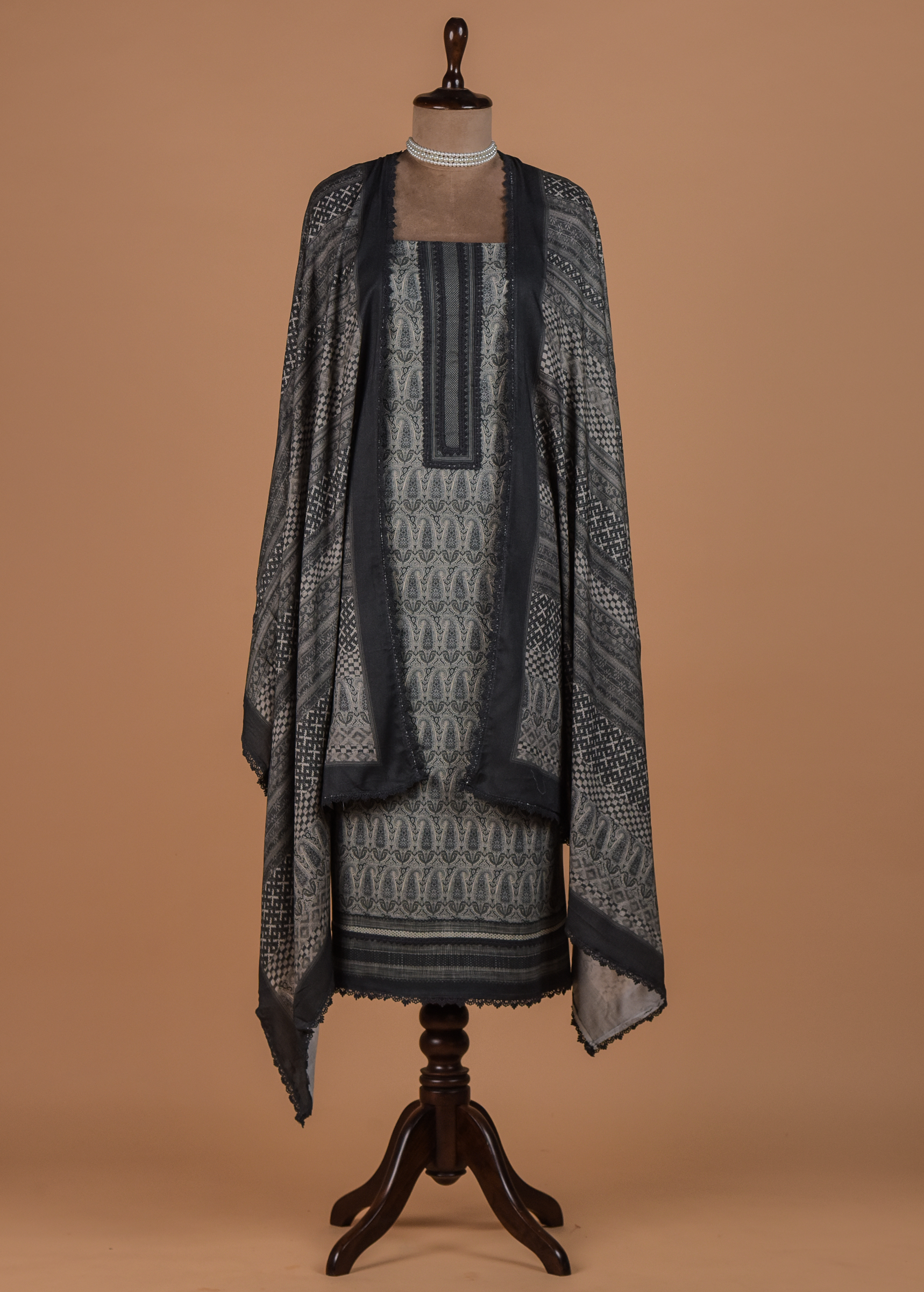 Grey Pashmina Dress Material