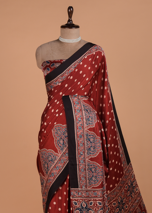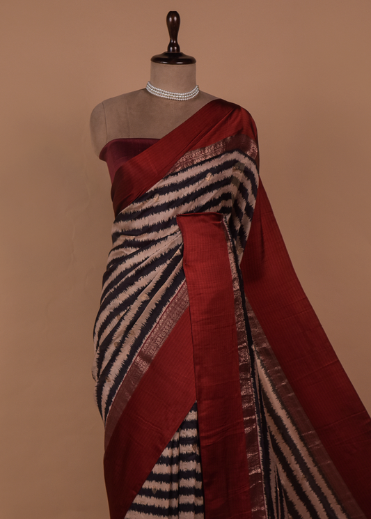 Red Tussar Printed Saree