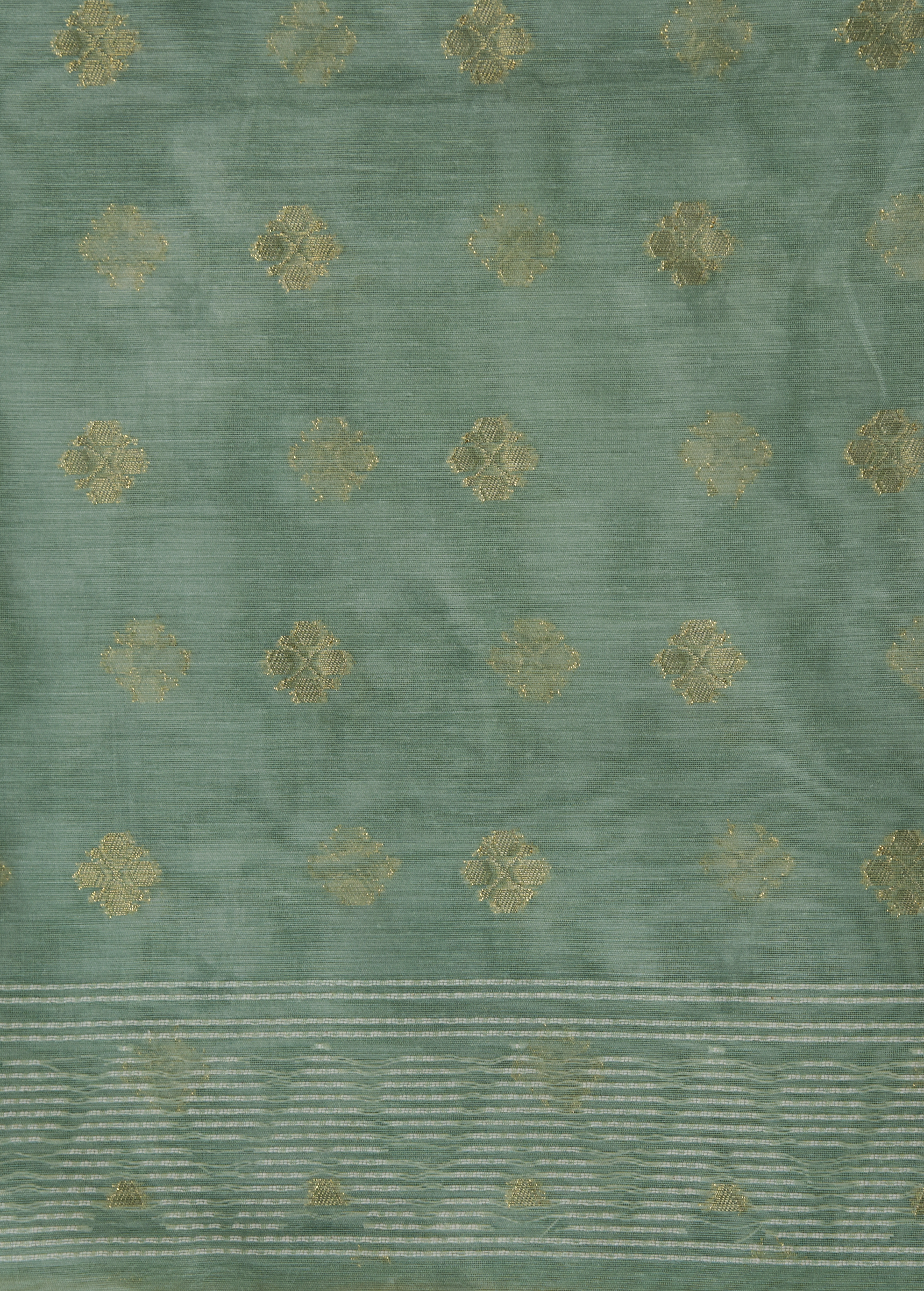 PRINTED COTTON SAREE WITH WOVEN BORDER ADORNING A MATCHING BLOUSE
