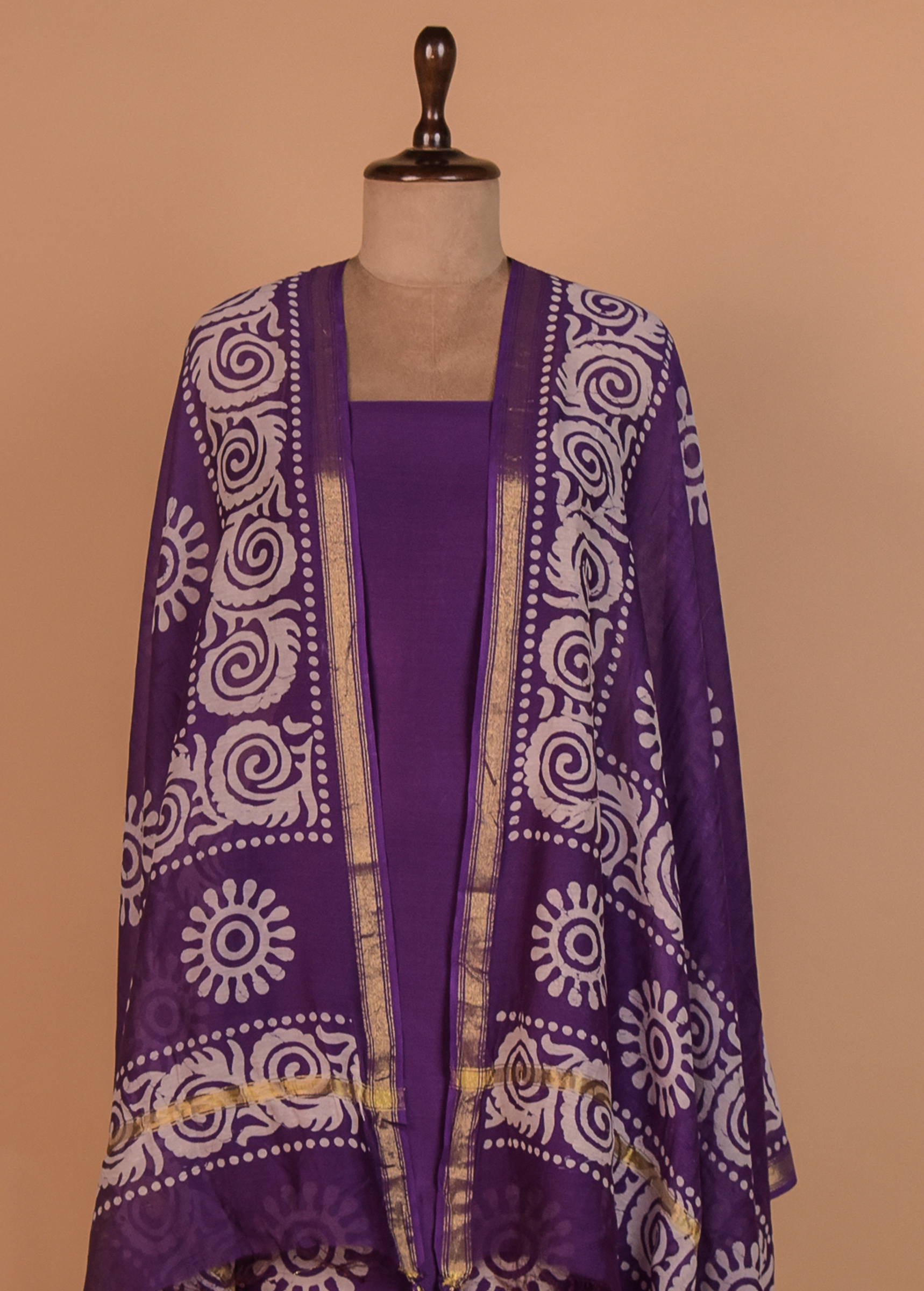 THREE PIECE SUIT SET WITH BLOCK PRINTING ADORNING A MATCHING DUPATTA AND BOTTOM