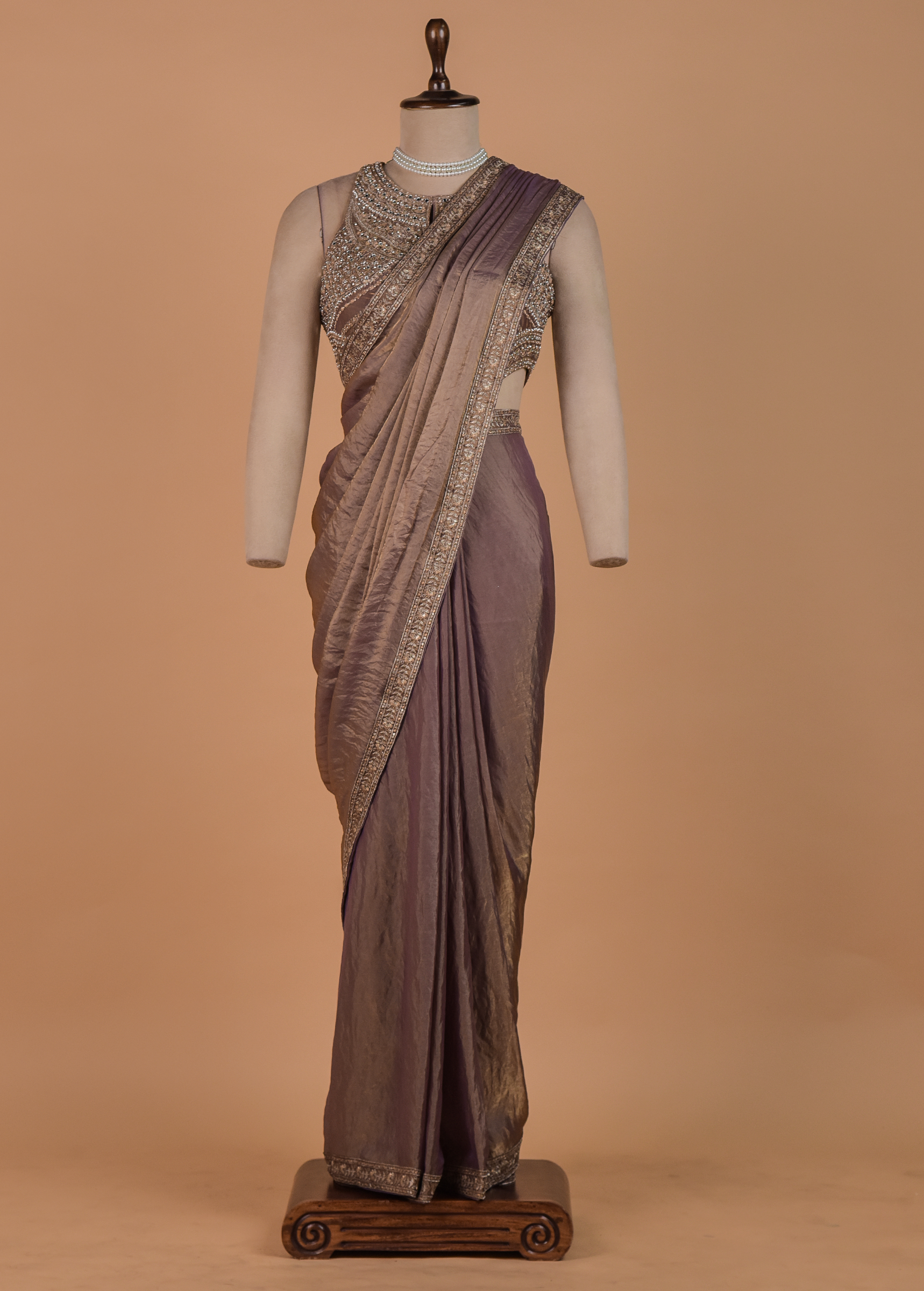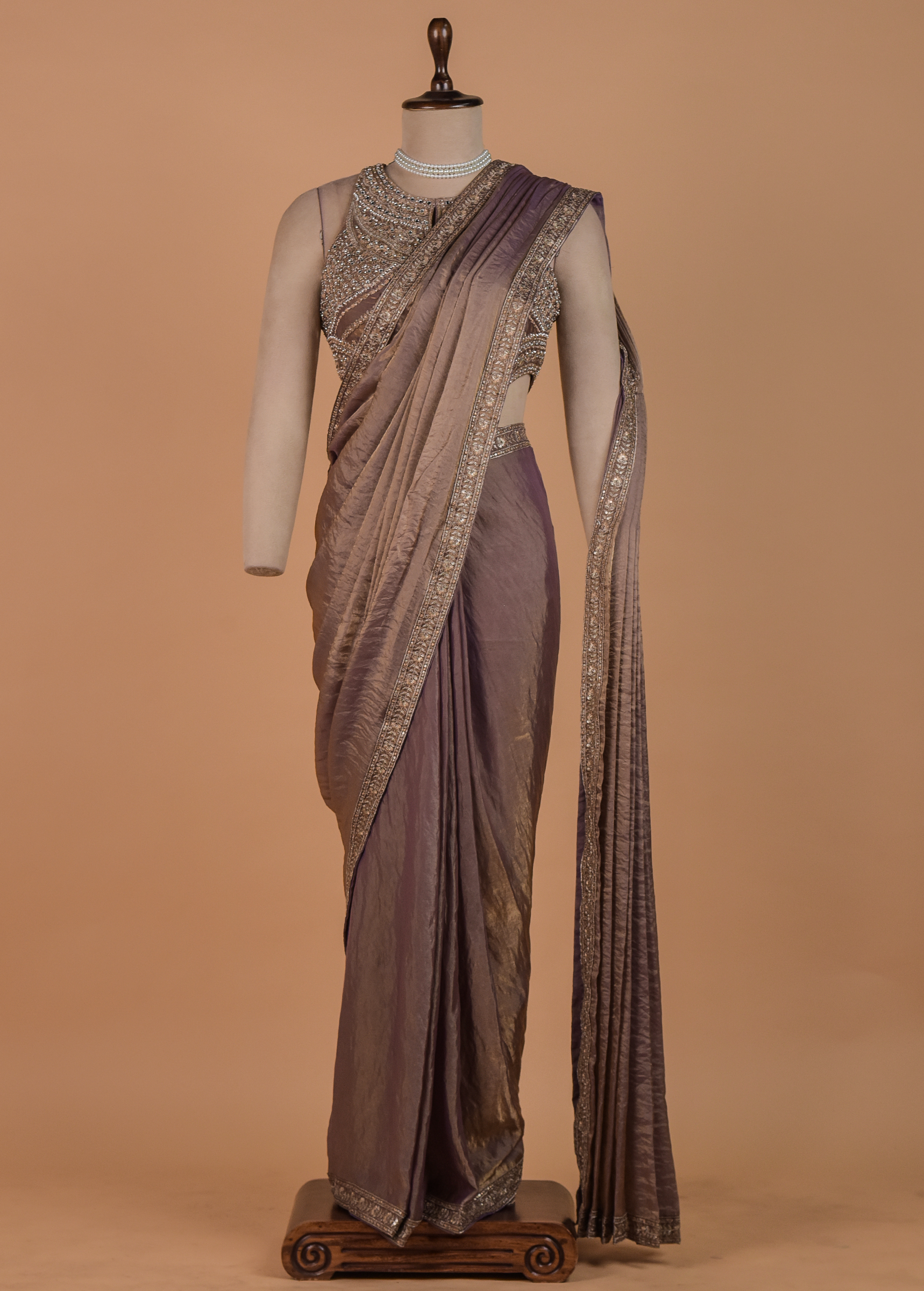 Bronze Tissue Georgette Readymade Saree