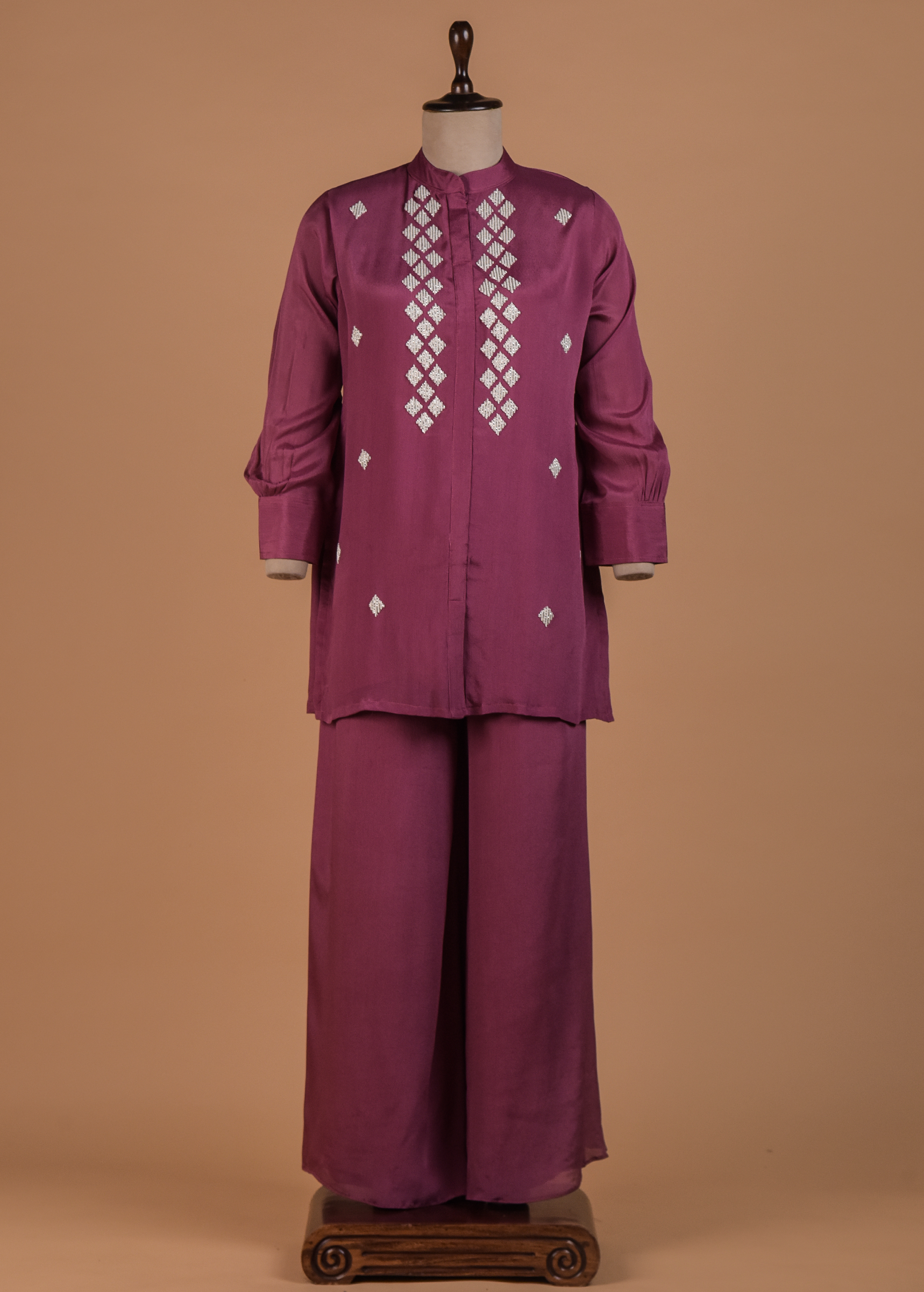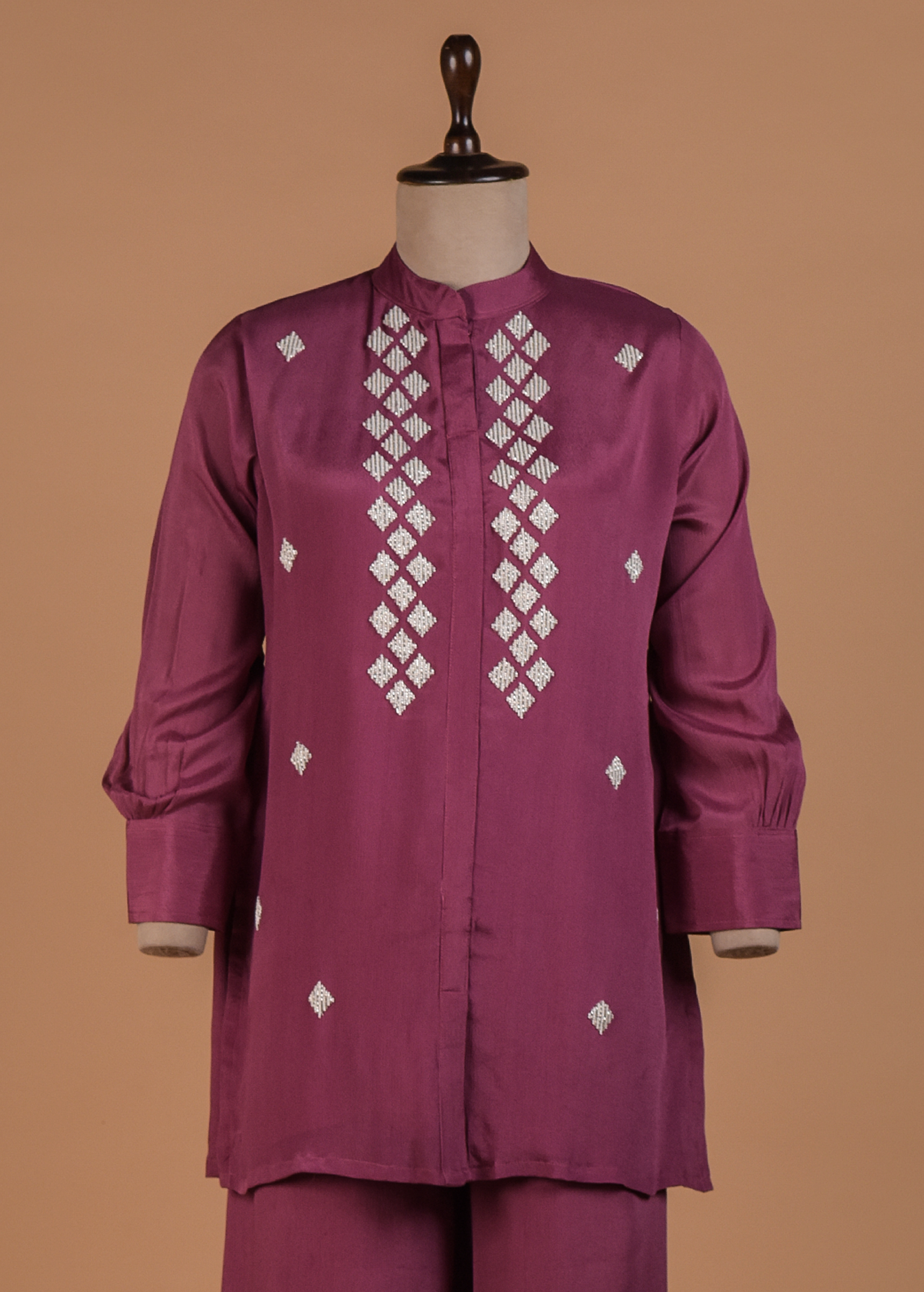TWO PIECE COORD SET WITH PEARL AND SEQENCE EMBROIDERY FIGURINES
