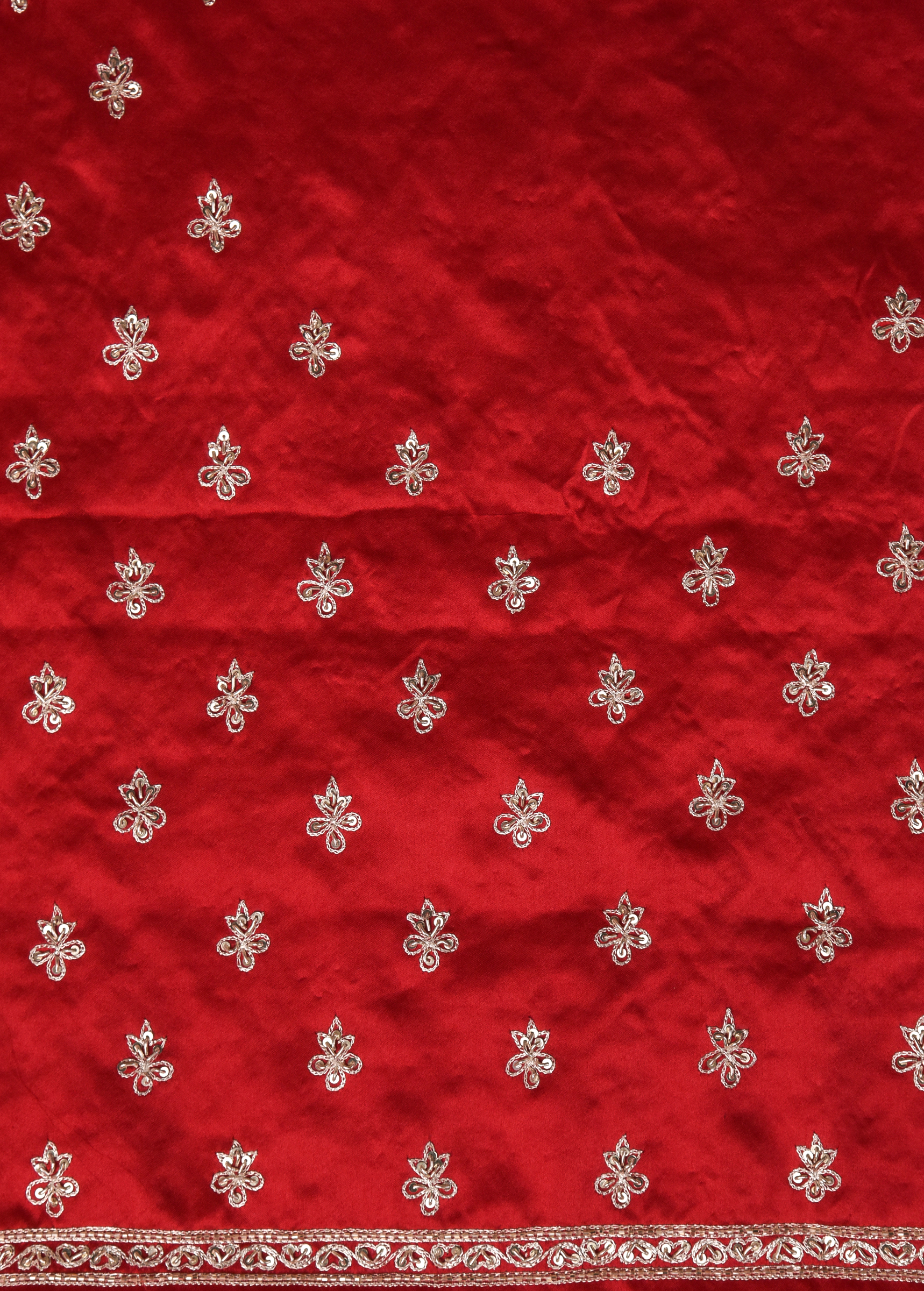 MOST EXQUISITE SATIN SAREE WITH FULL JAAL EMBROIDERED IN DABKA WORK ADORNING A MATCHING BLOUSE