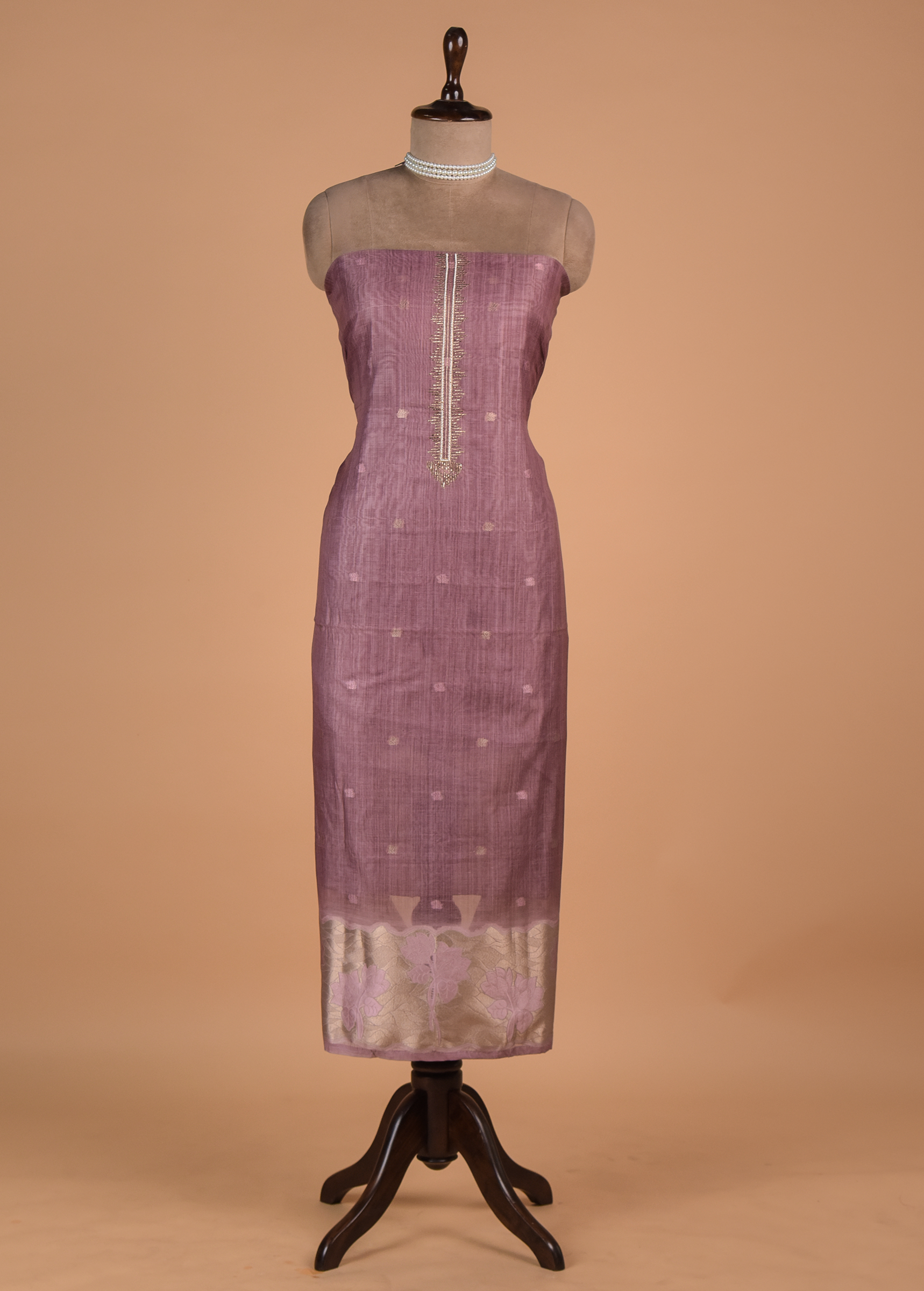 THREE PIECE SUIT SET IN CHANDERI COTTON FABRIC WITH WOVEN FLORAL DESIGN ADORNING A MATCHING DUPATTA AND BOTTOM