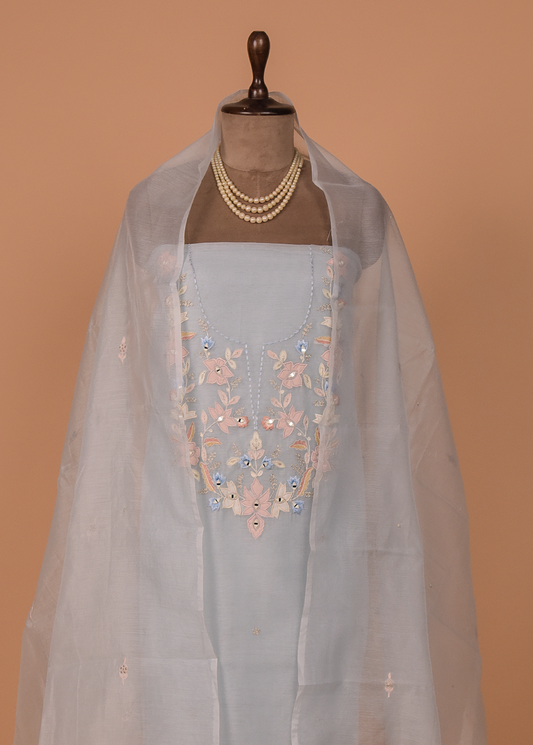 Blue Chanderi Dress Material