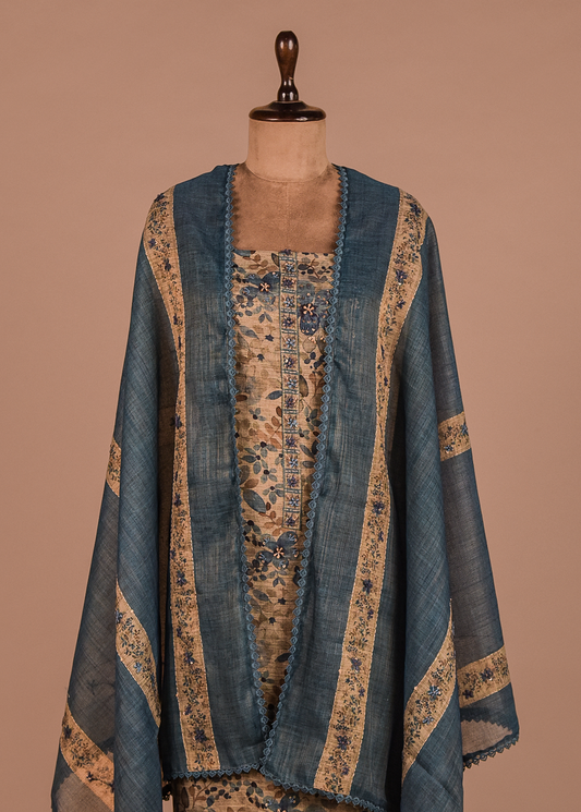Blue Tussar Dress Material