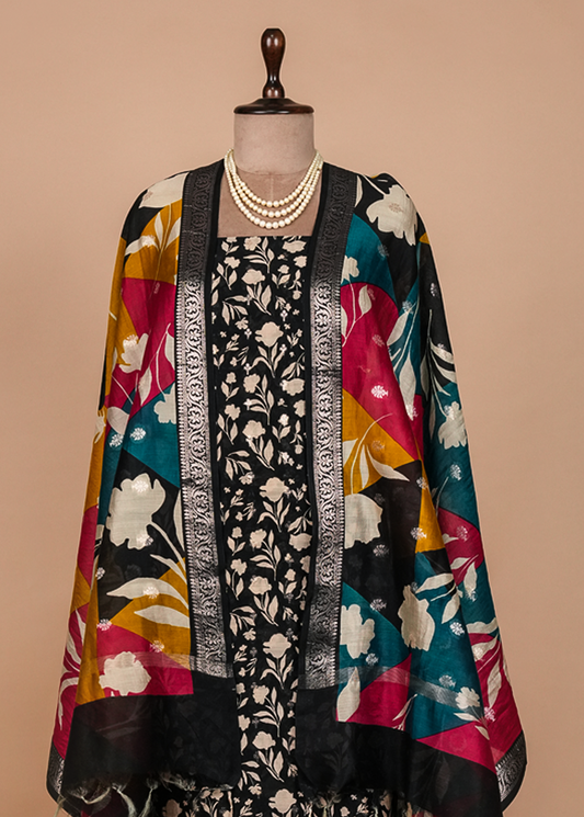 Black Chanderi Dress Material