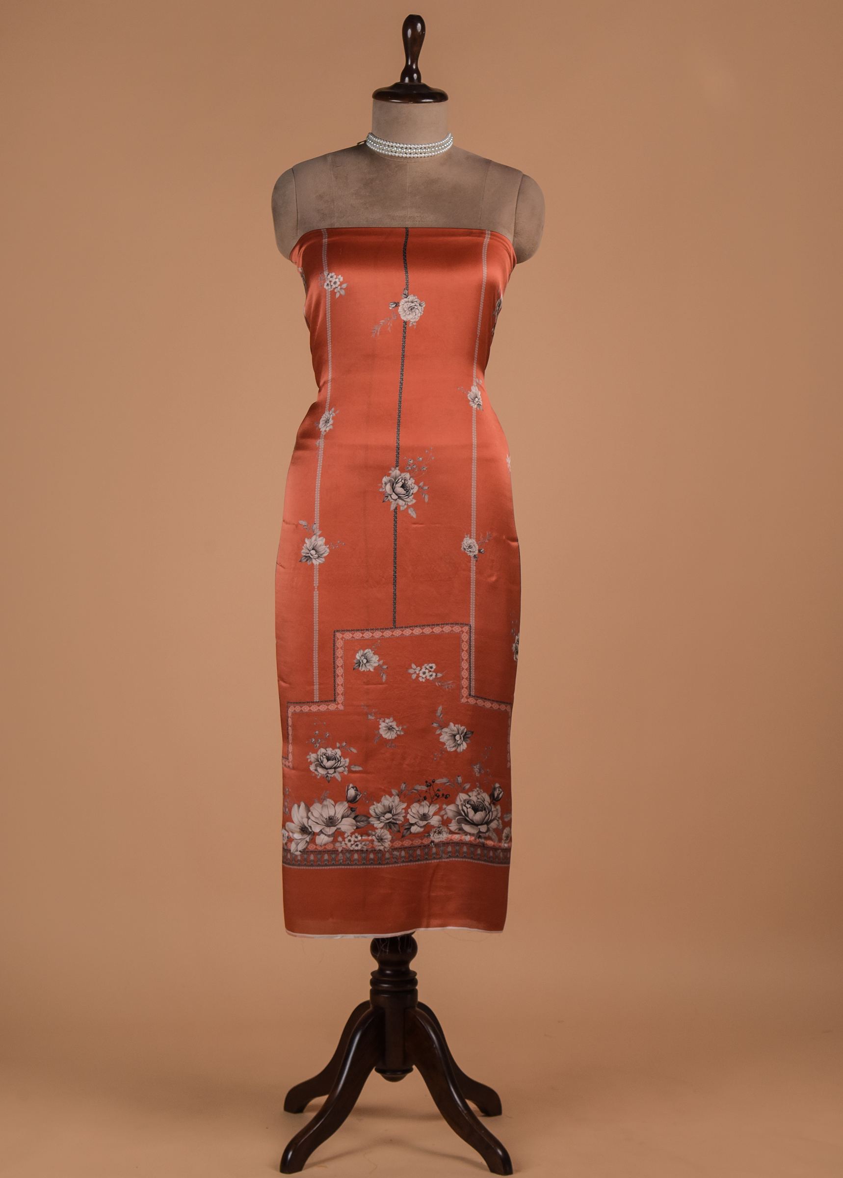 THREE PIECE PRINTED SATIN SUIT SET WITH MATCHING DUPATTA AND BOTTOM
