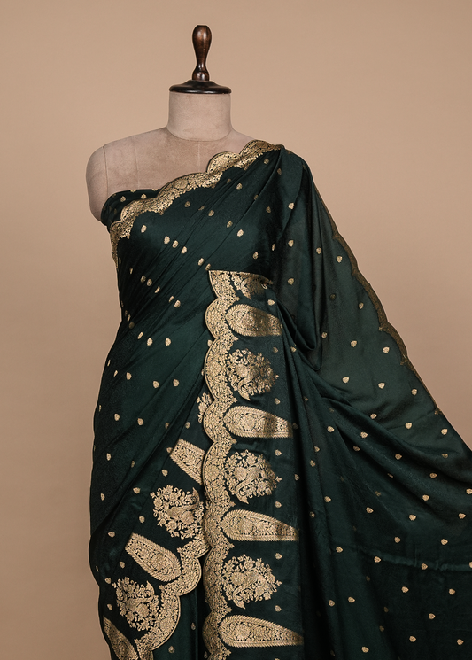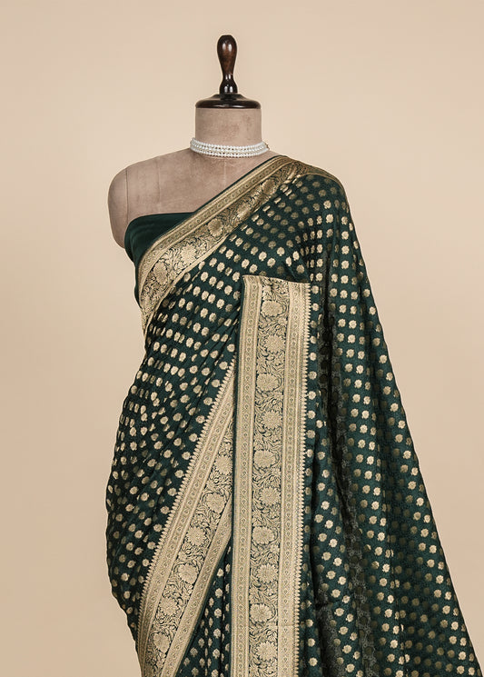 Green Crepe Banarasi Saree