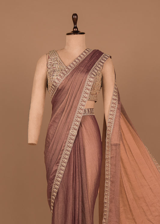 Brown Tissue Georgette Readymade Saree