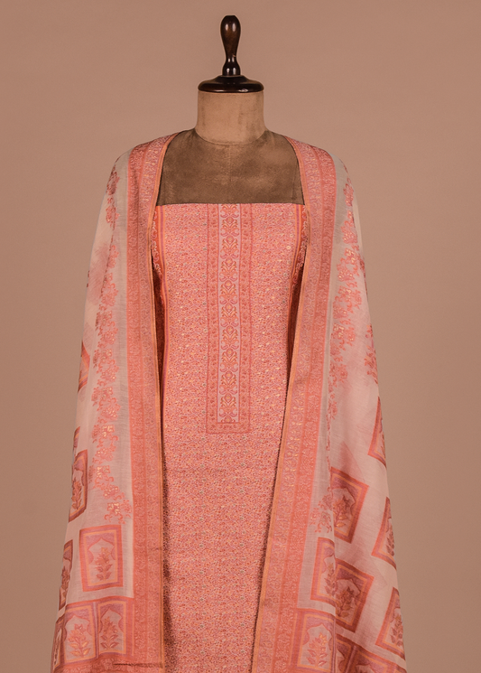 Peach Mulmul Cotton Dress Material