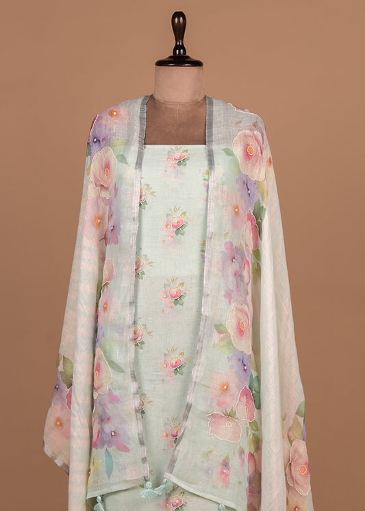 Green Cotton Silk Straight Set