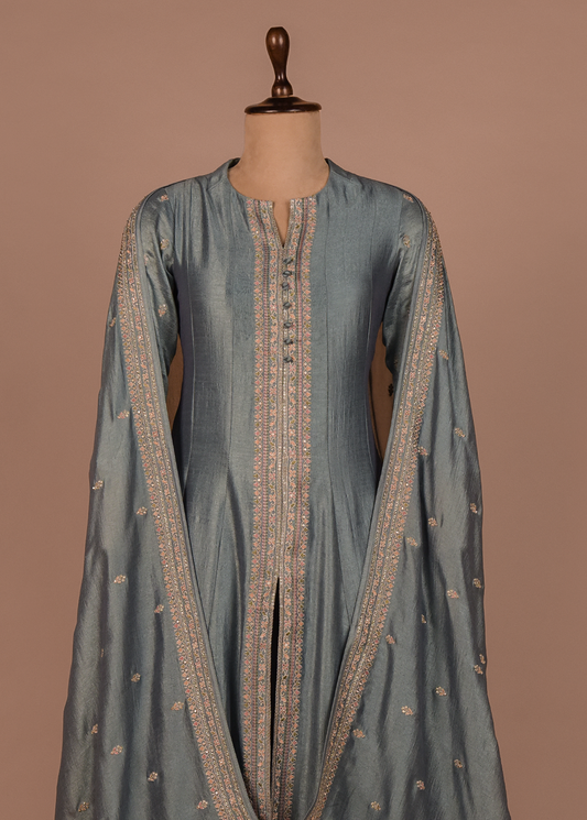 Blue Cotton Silk A Line Set