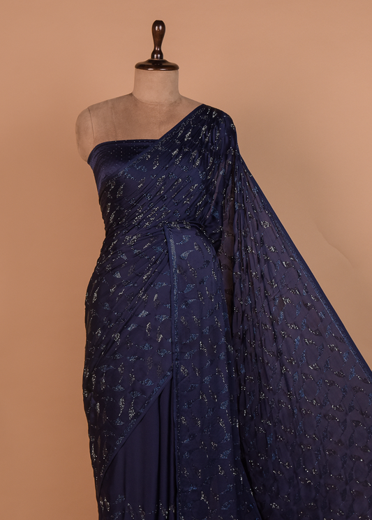 Blue Satin Embroidered Saree