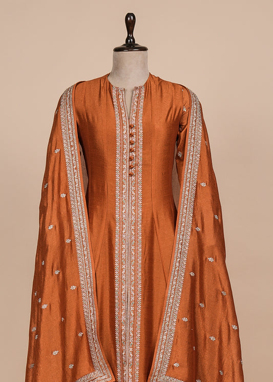 Rust Crepe Silk Straight Set