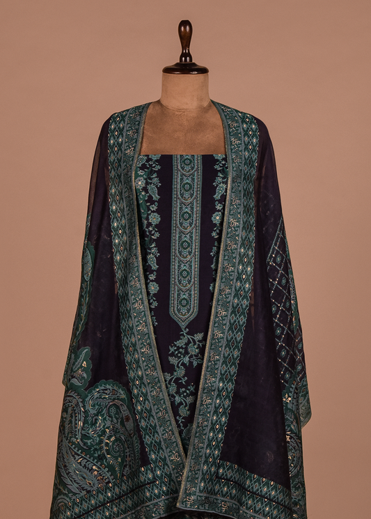 Blue Cotton Silk Dress Material