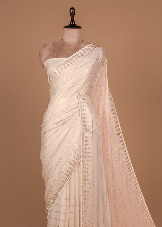 Cream Tissue Georgette Embroidered Saree