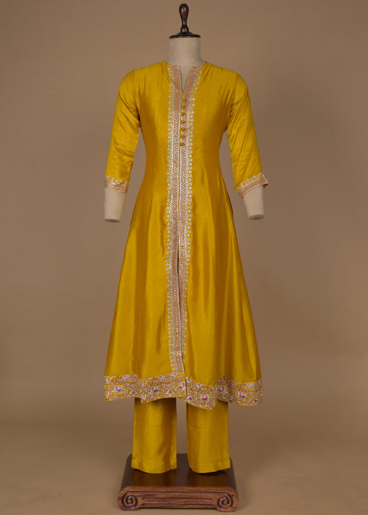 Yellow Cotton Silk Straight Set
