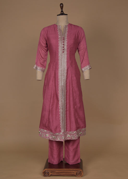 Pink Cotton Silk Straight Set