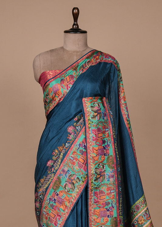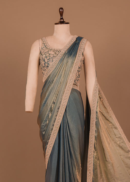 Blue Satin Embroidered Saree