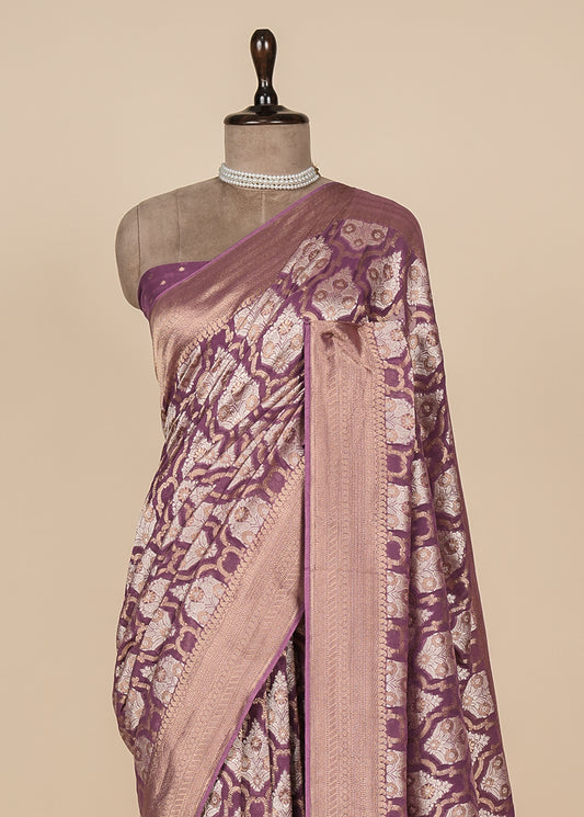 Purple Crepe Silk Banarasi Saree