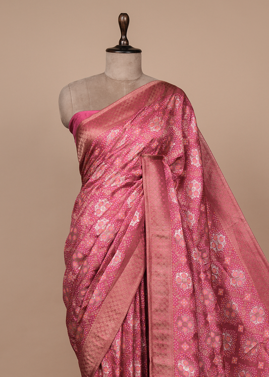 Pink Crepe Silk Banarasi Saree