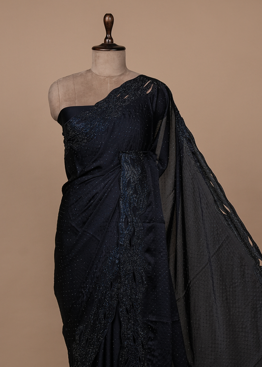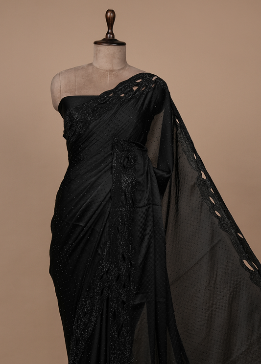 Black Satin Embroidered Saree