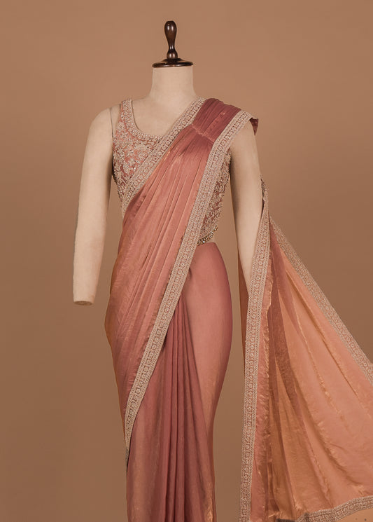 Peach Shamo Satin Readymade Saree