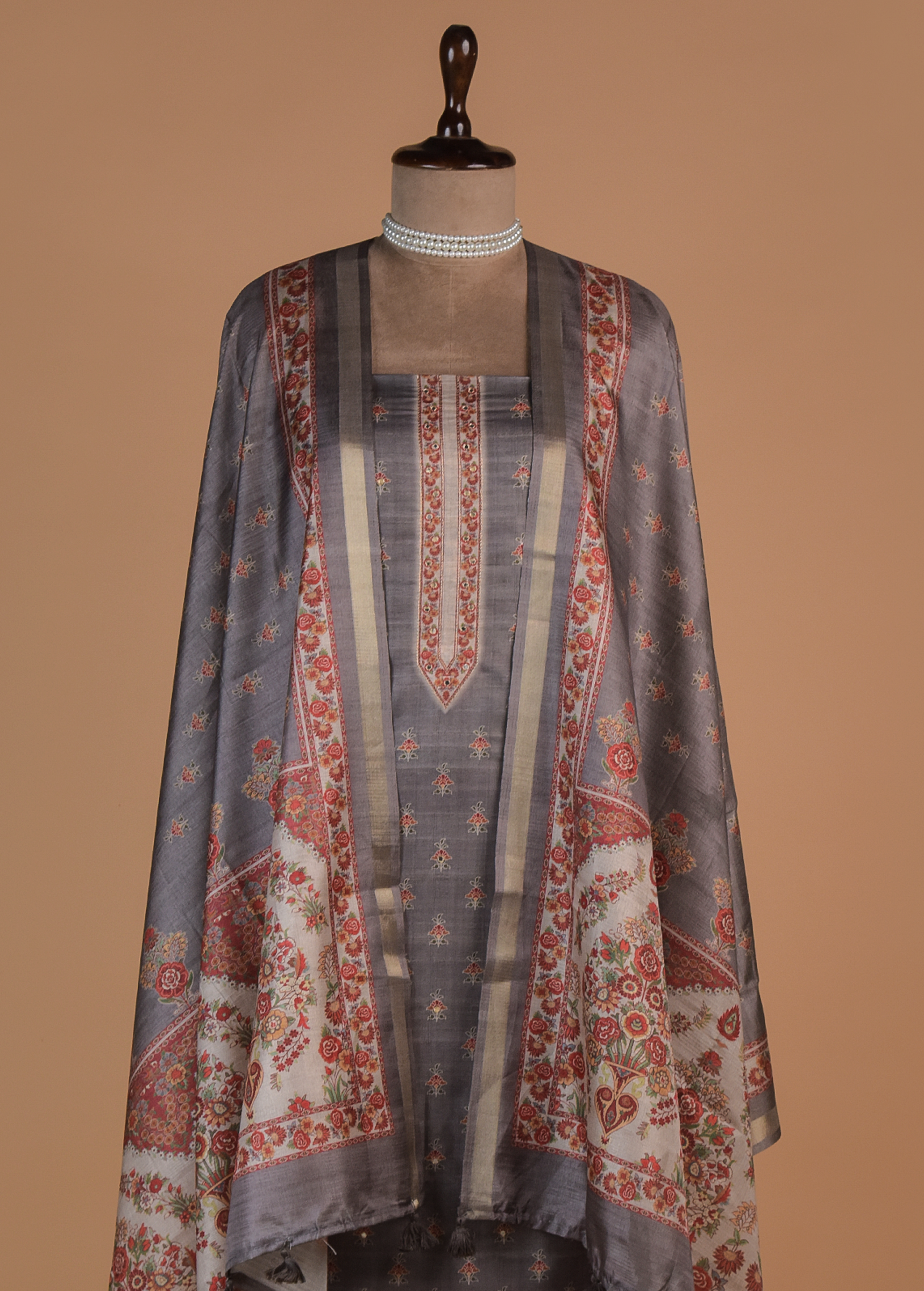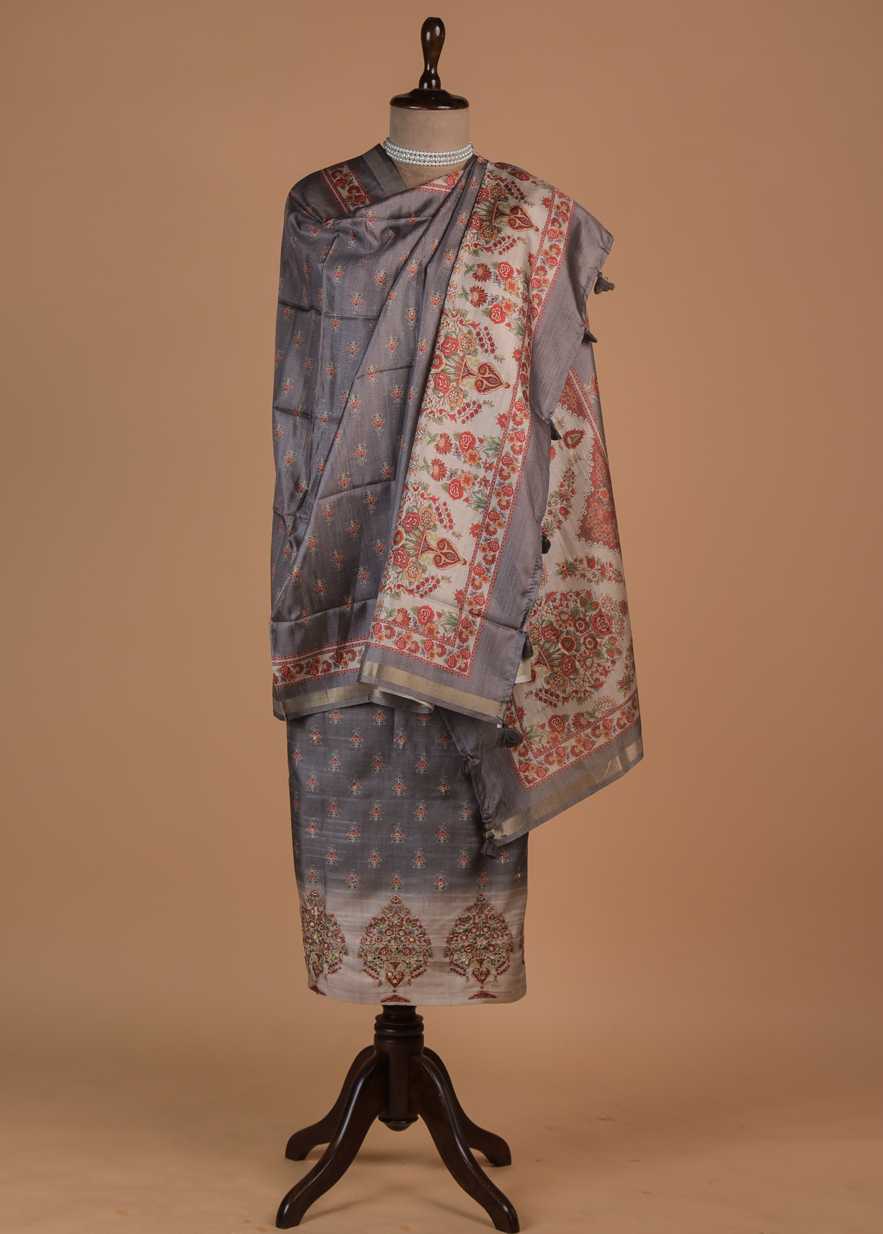 THREE PIECE PRINTED COTTON TUSSAR SUIT SET WITH MATCHING DUPATTA AND BOTTOM