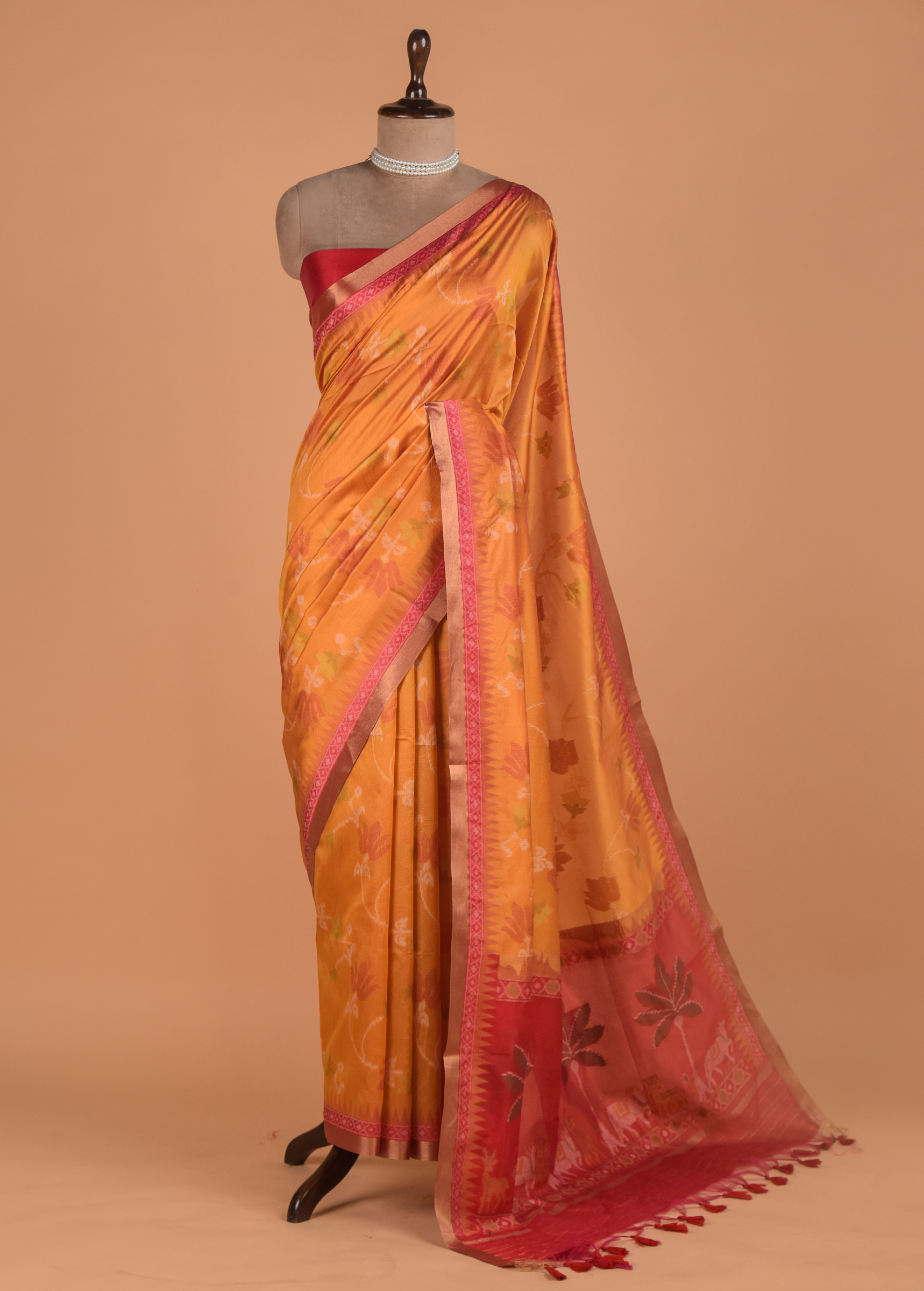 WOVEN ART TUSSAR SAREE IN PATOLA DESIGN ADORNING A MATCHING BLOUSE