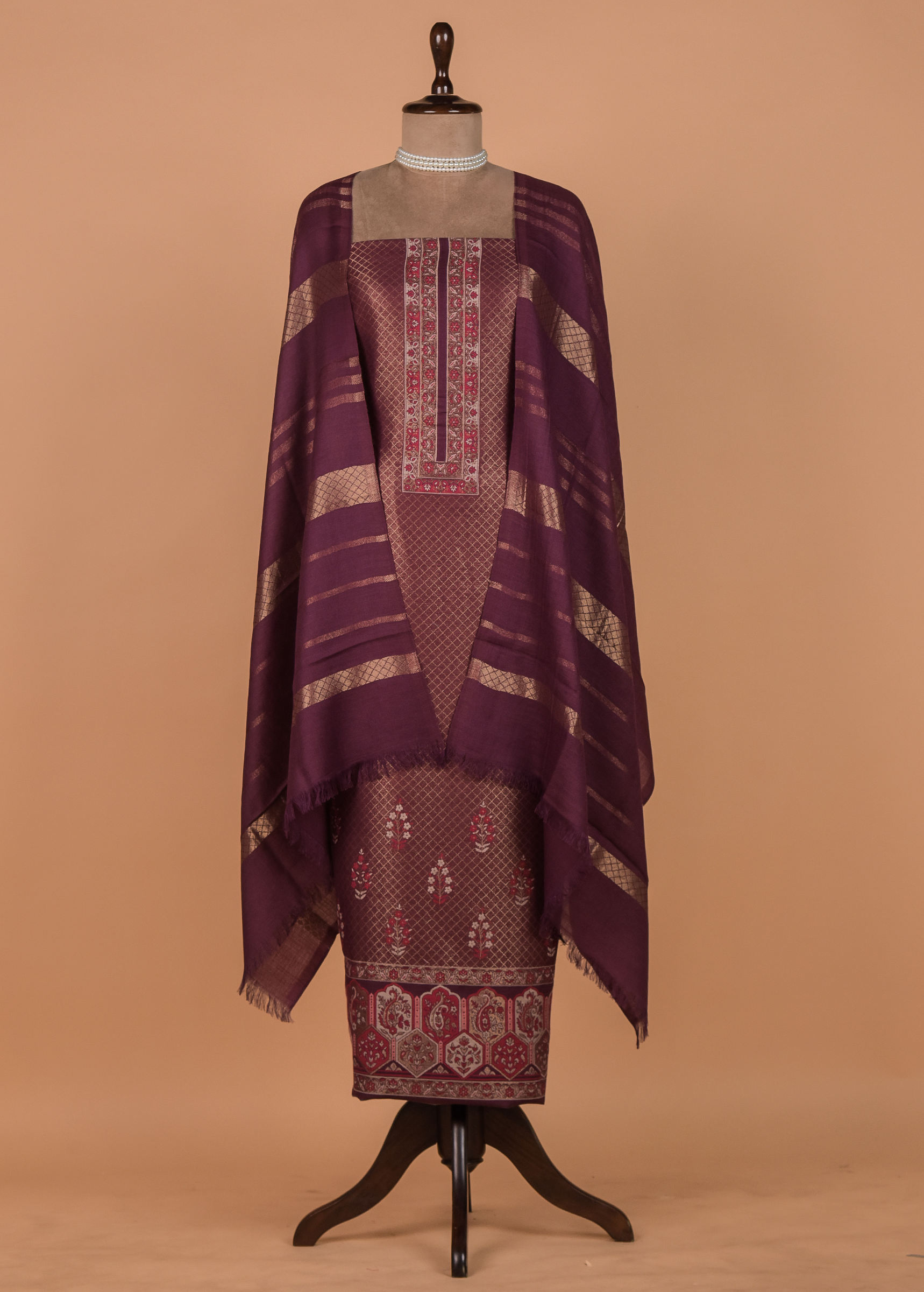 Wine Pashmina Dress Material