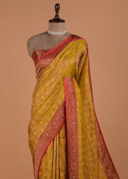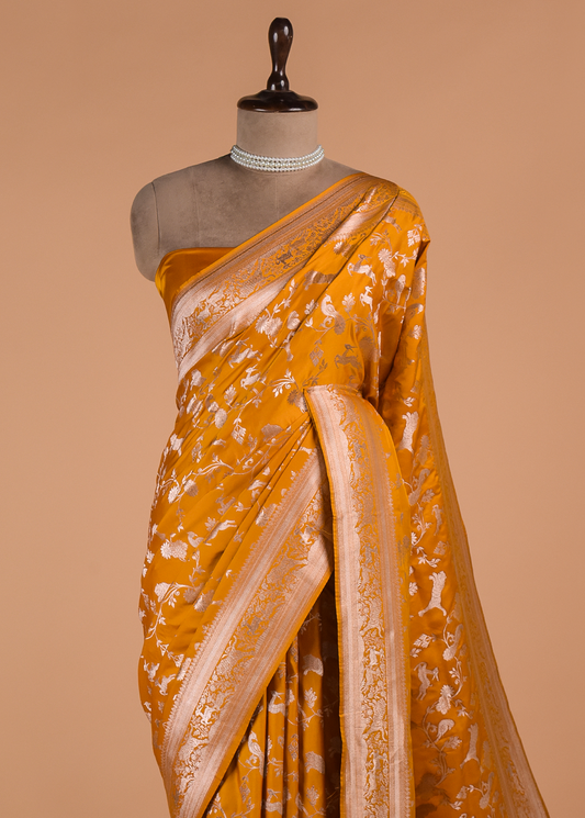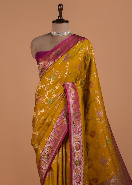 Yellow Moroccan Silk Banarsi Saree