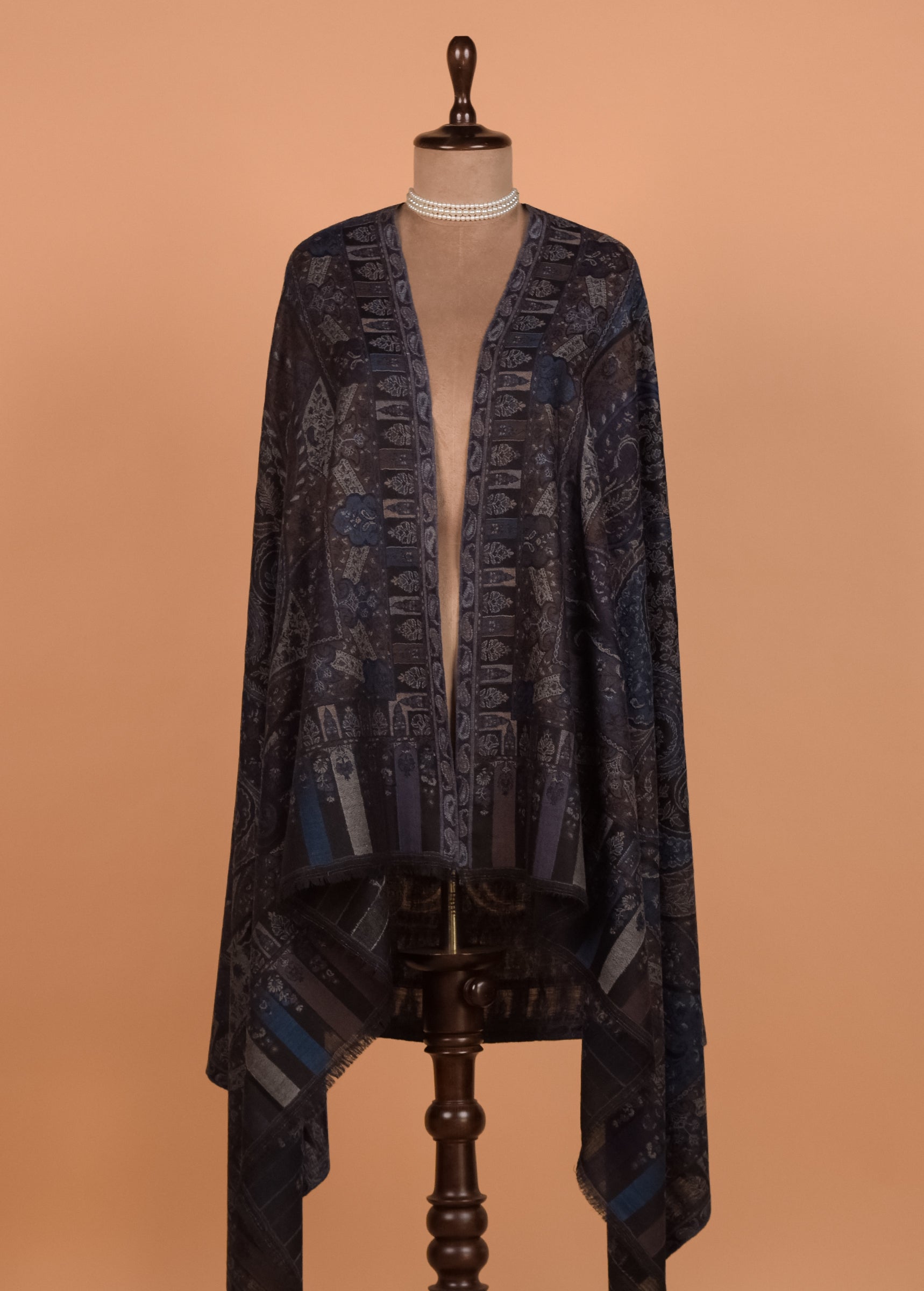 PASHMINA SHAWL WITH A MIX OF WOOL WOVEN IN MULTICOLOURED THREADS