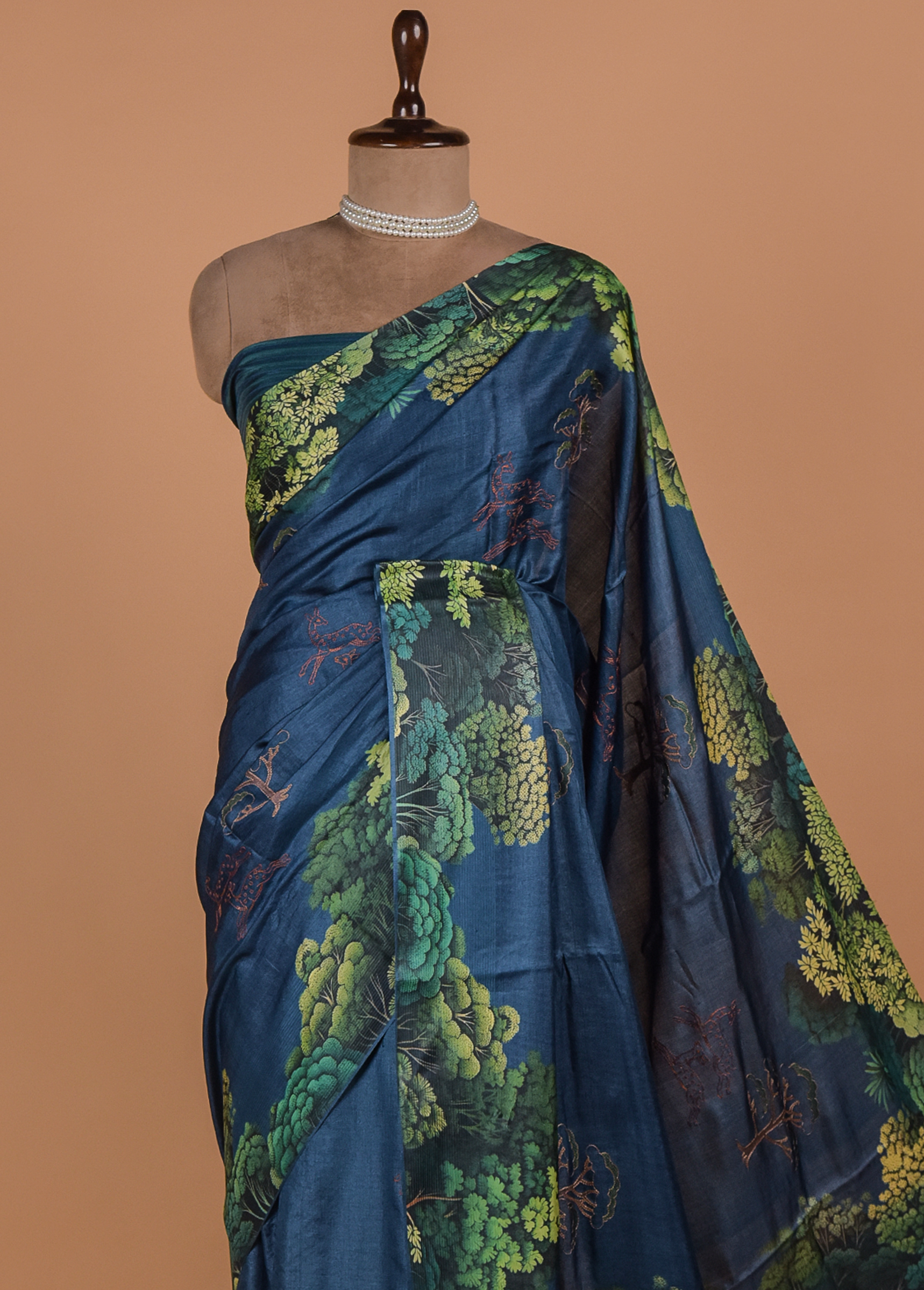 DIGITALLY PRINTED SATIN SAREE WITH MATCHING BLOUSE