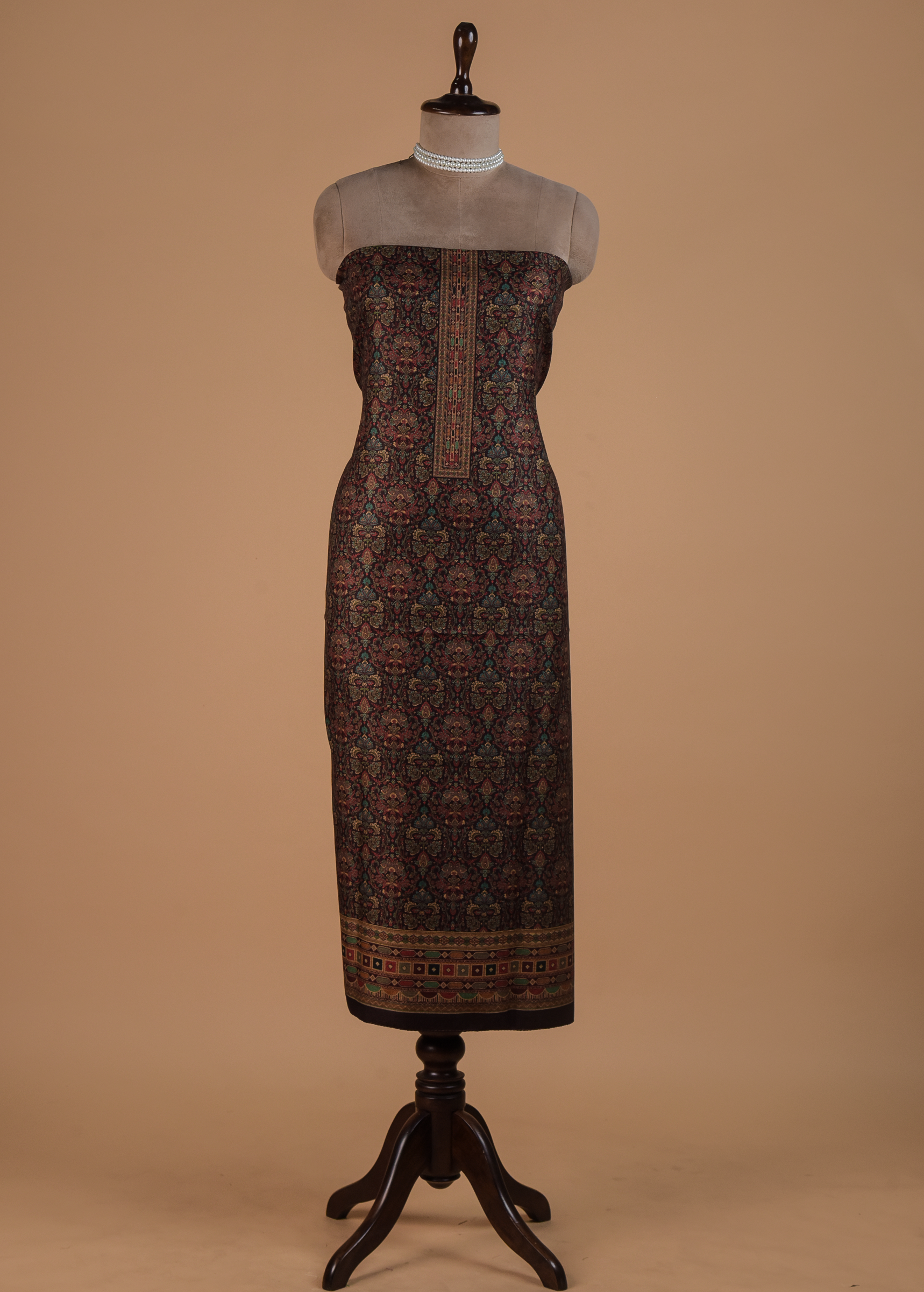 THREE PIECE PRINTED PASHMINA SUIT SET WITH MATCHING DUPATTA AND BOTTOM
